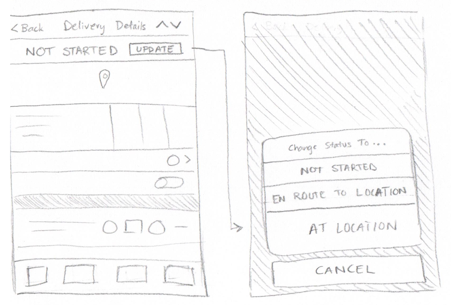 We could simply display the technician’s status on the delivery at the top of the screen, but there did not seem to be any obvious or intuitive ways to suggest interaction in order update this status. Tapping on it did not seem clear enough.
